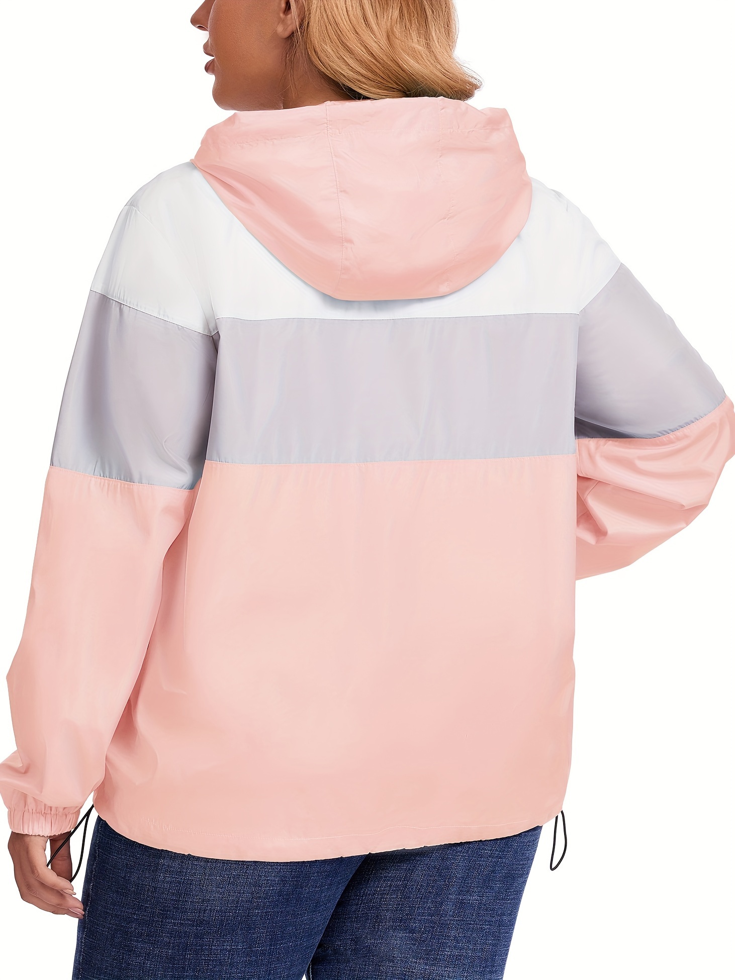 Plus Size Raincoat, Women Water Resistant Rain Jacket, Packable, Outdoor Hooded Windbreaker For Women