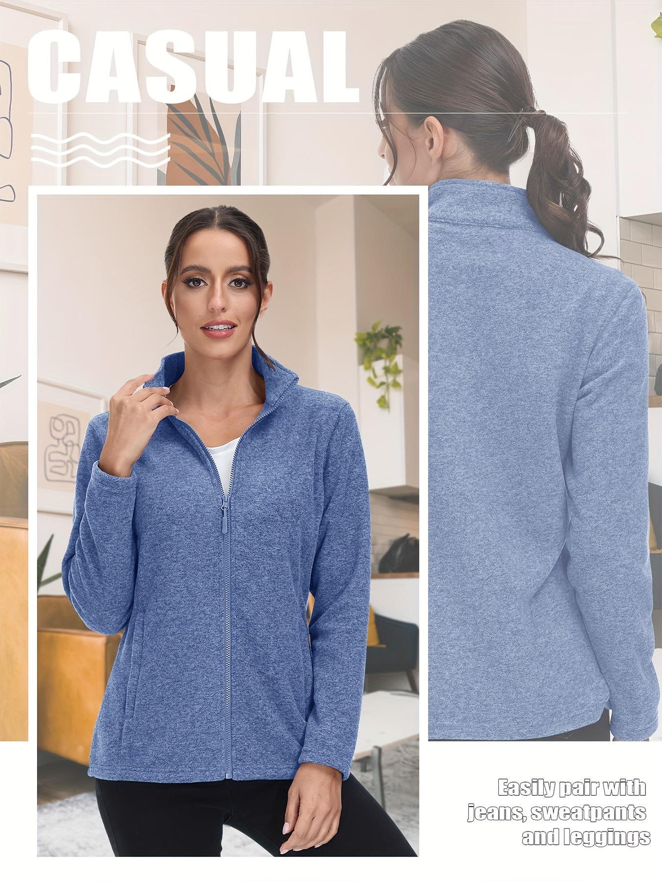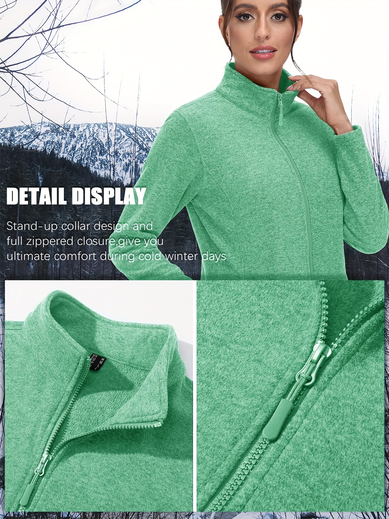 Women's Plus Size Fleece Jacket Full Zip Stand Collar Casual Jacket Autumn And Winter Warm Coat Lightweight Soft Comfort Jacket 2 Zipper Pockets Daily Travel Wear Commute Office To School Home Outdoor Recreation Activities Large Size Fleece Jacket
