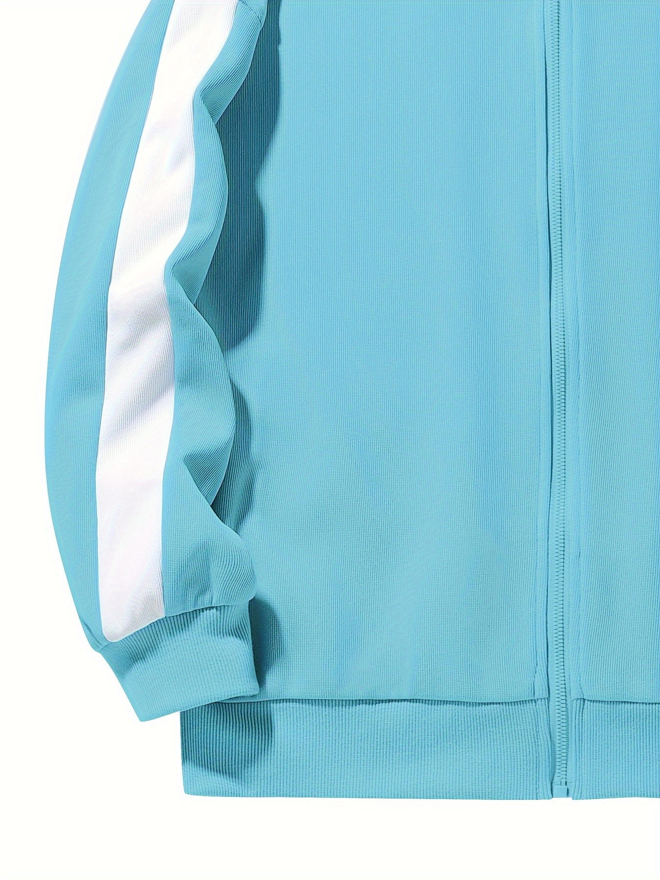 Chic Plus Size Women's Hooded Jacket - Color Block, Zip-Up Outdoor Coat With Drawstring & Pockets For Fall/Winter