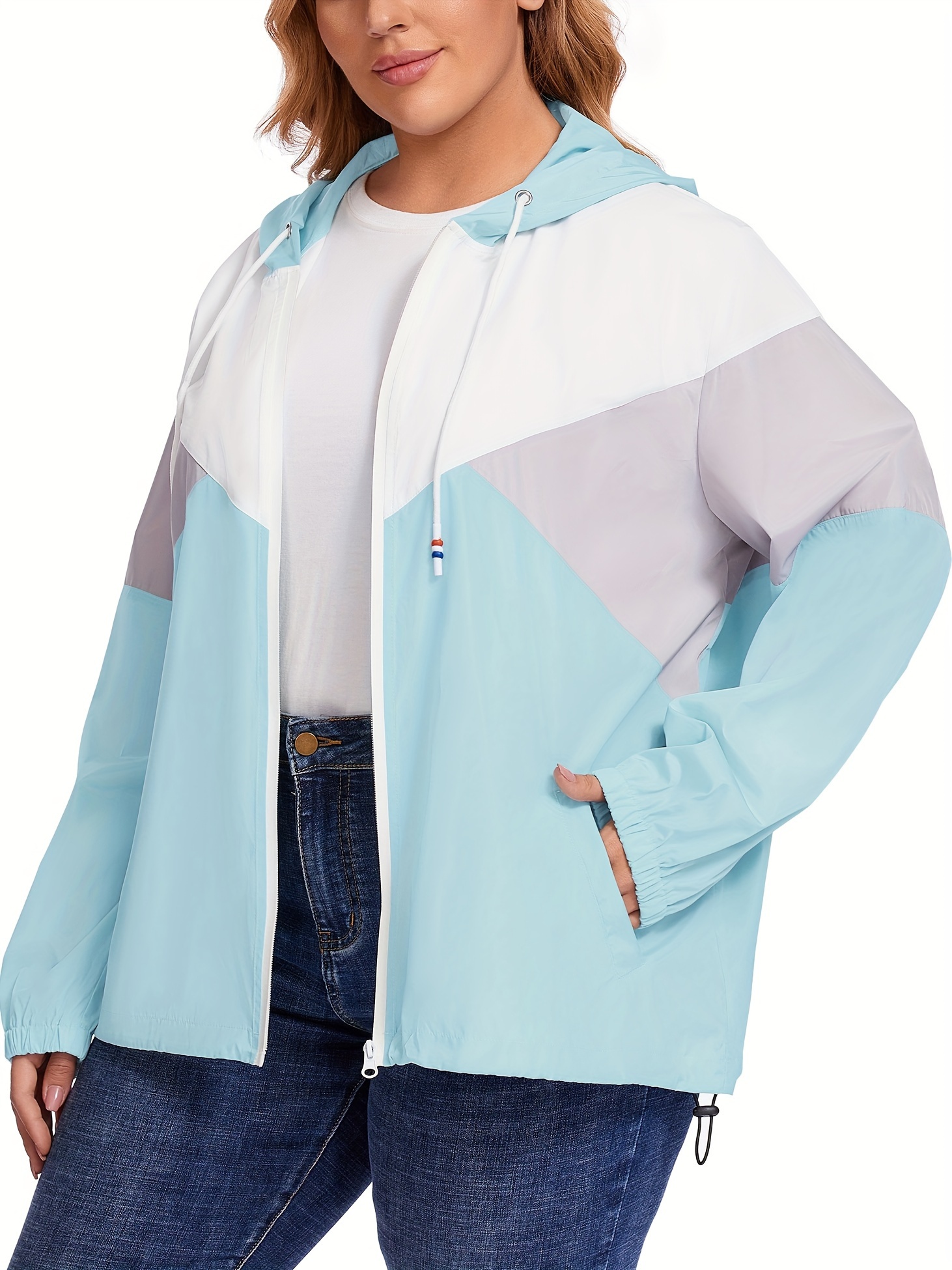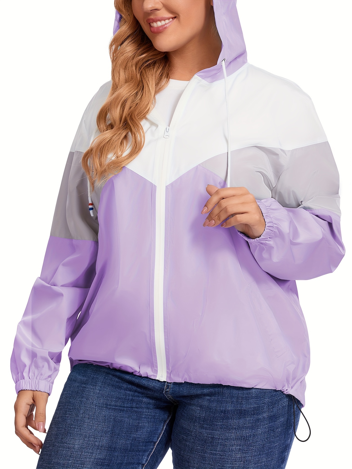 Plus Size Raincoat, Women Water Resistant Rain Jacket, Packable, Outdoor Hooded Windbreaker For Women
