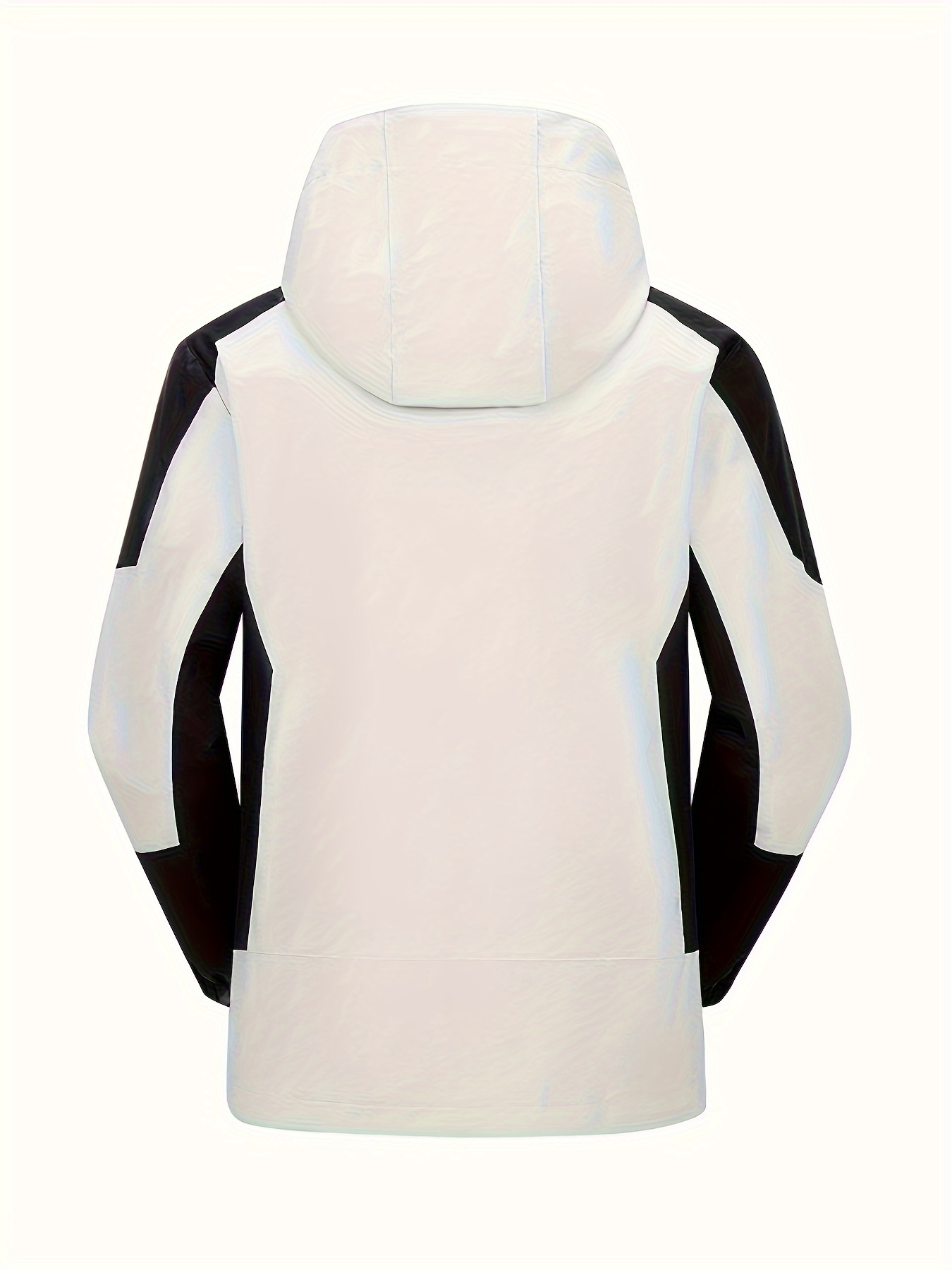 Plus Size Women's Fashion Hooded Jacket - Stylish Color Block Design, Long Sleeve with Adjustable Drawstring Waist, Water-Resistant and Breathable Fabric for Outdoor Enthusiasts, Perfect for Fall and Winter Activities
