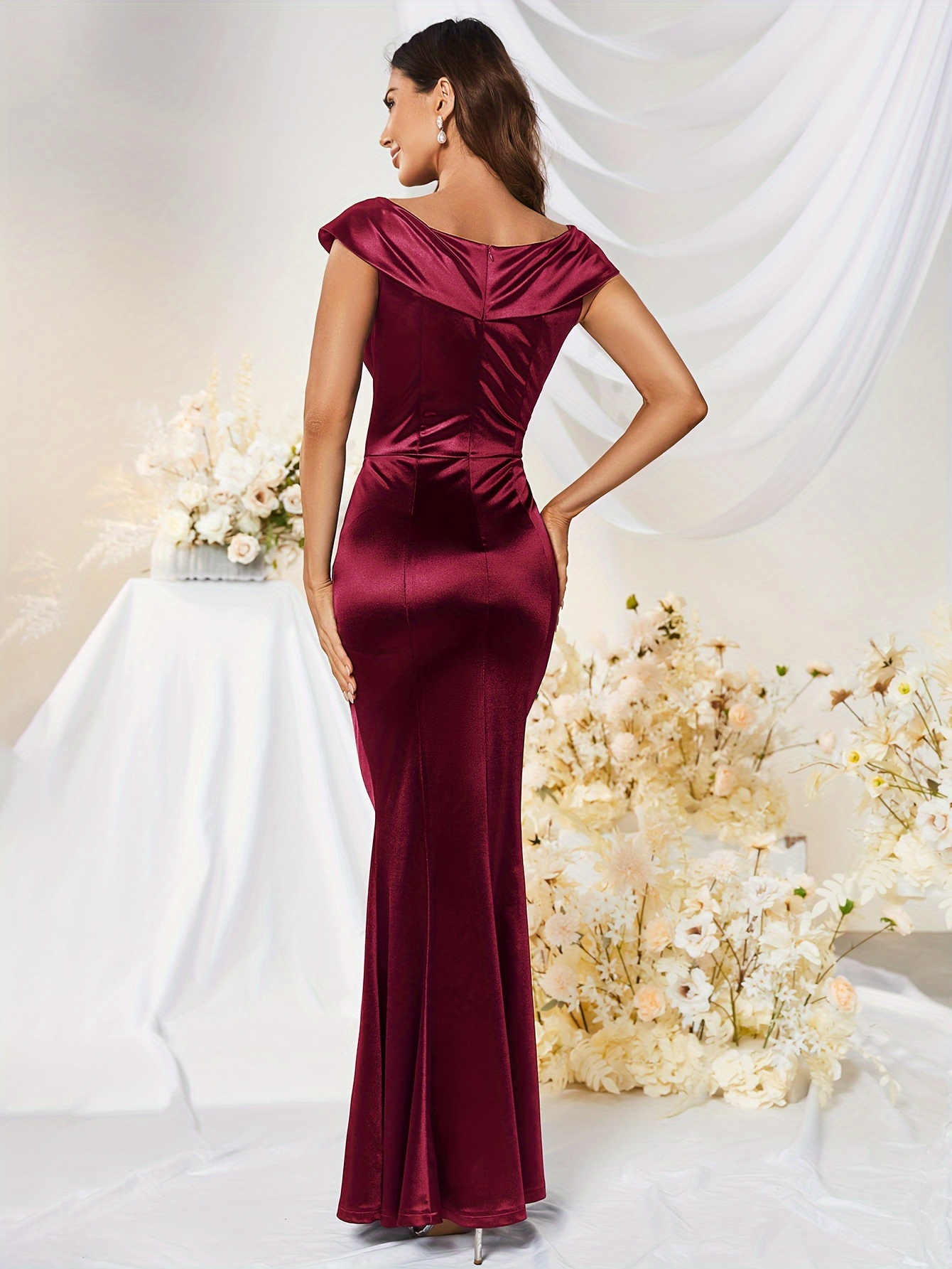 Bodycon Solid Mermaid Dress, Elegant Short Sleeve Dress For Party & Banquet, Women's Clothing