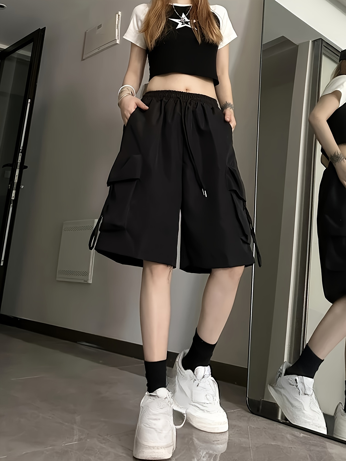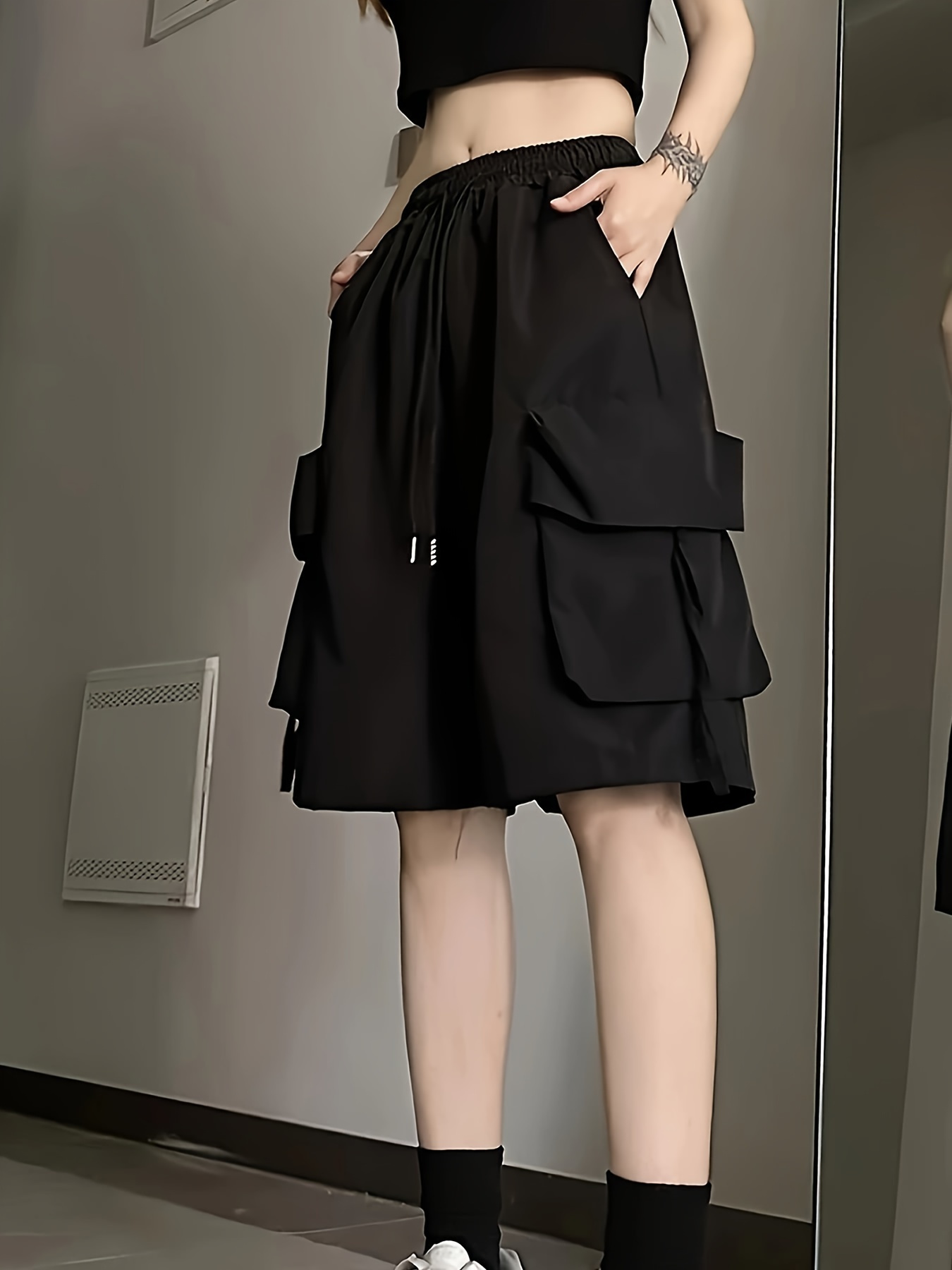 Stylish Flap Pocket Cargo Shorts - Elastic Waist, Drawstring, Casual, Comfortable, Breathable, Quick-Drying, Spring & Summer Essentials - Women's Clothing for Outdoor Activities