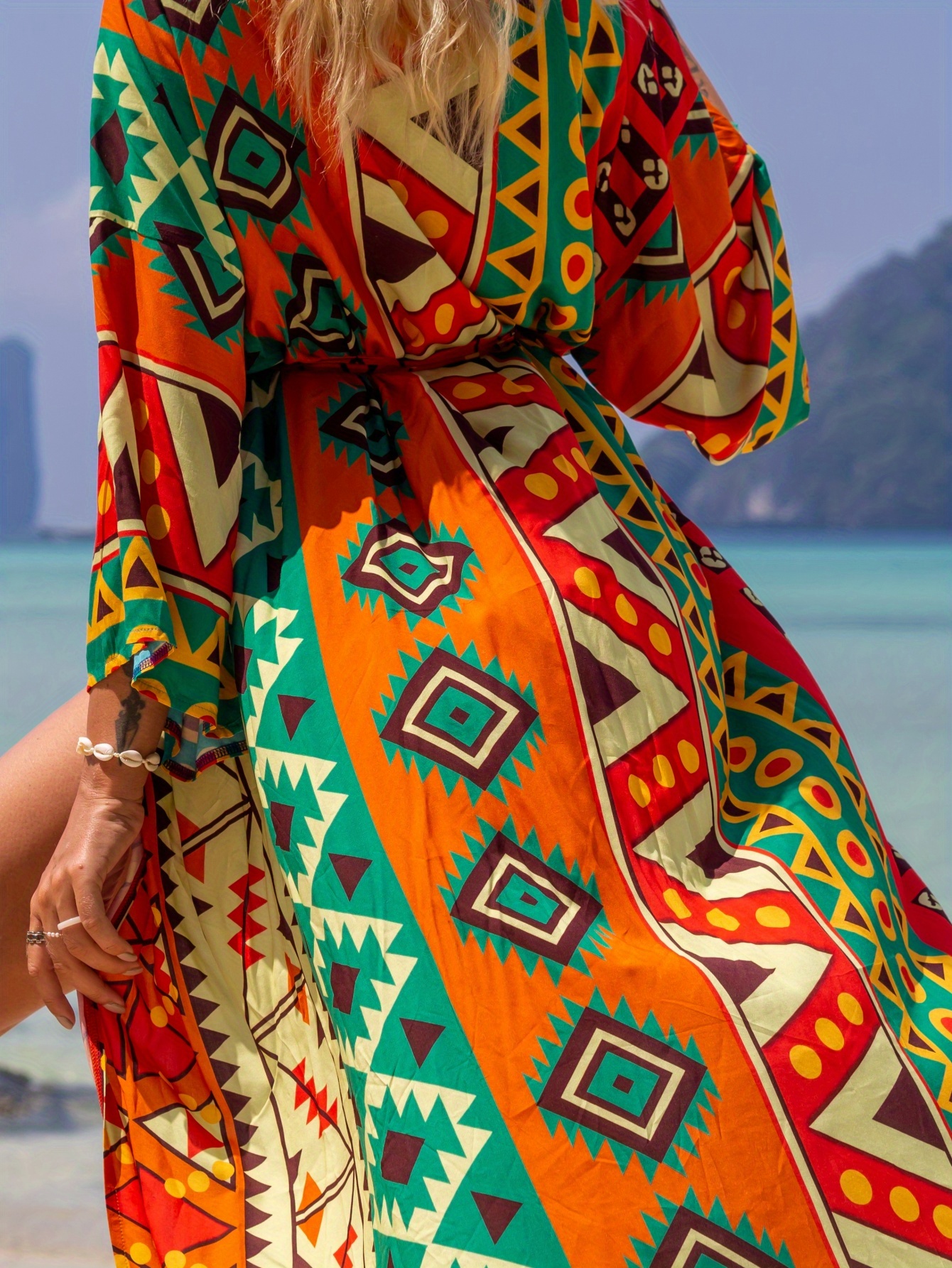 Women's Kaftan Beach Smock Positioning Print Cotton Long Cardigan Sun Protection Resort Seaside