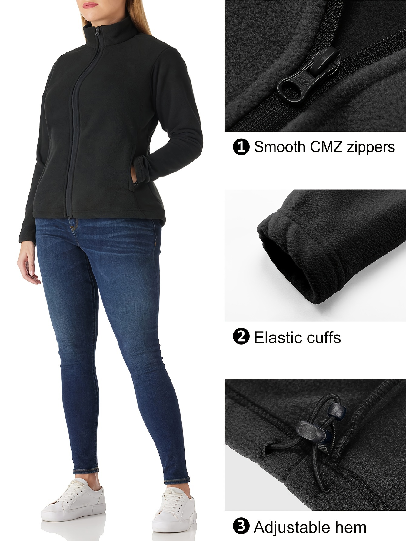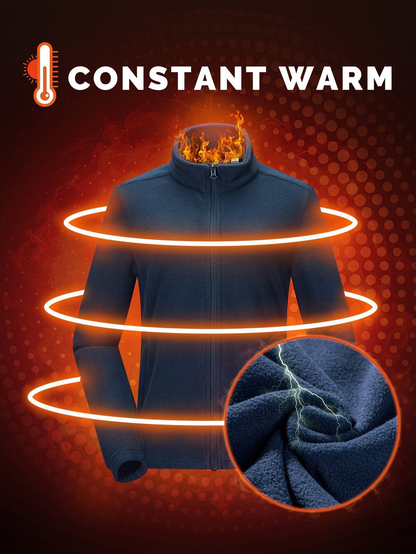 Women's Outdoor Sports Plush Jacket, Plus Size Solid Color Zipper Warm Soft Long Sleeve Lightweight Fleece Jacket