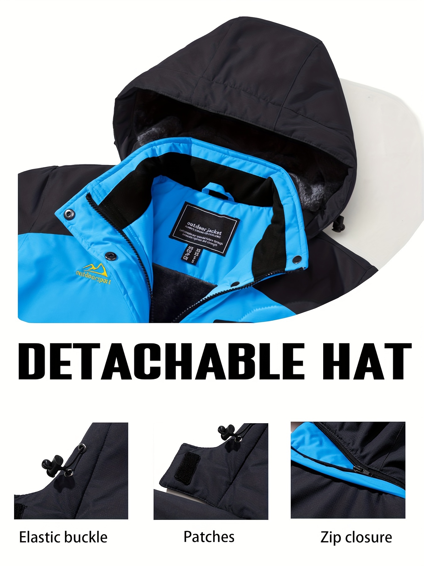 Windproof & Water Resistant: This snow jacket is made of windproof and water-resistant material which can keeps you covered from ice cold wind. Windproof Detachable Hood with Zipper, Adjustable Hook Loop Sleeve Cuffs, Long Sleeve, Stand Collar and Full Zipper Closure.