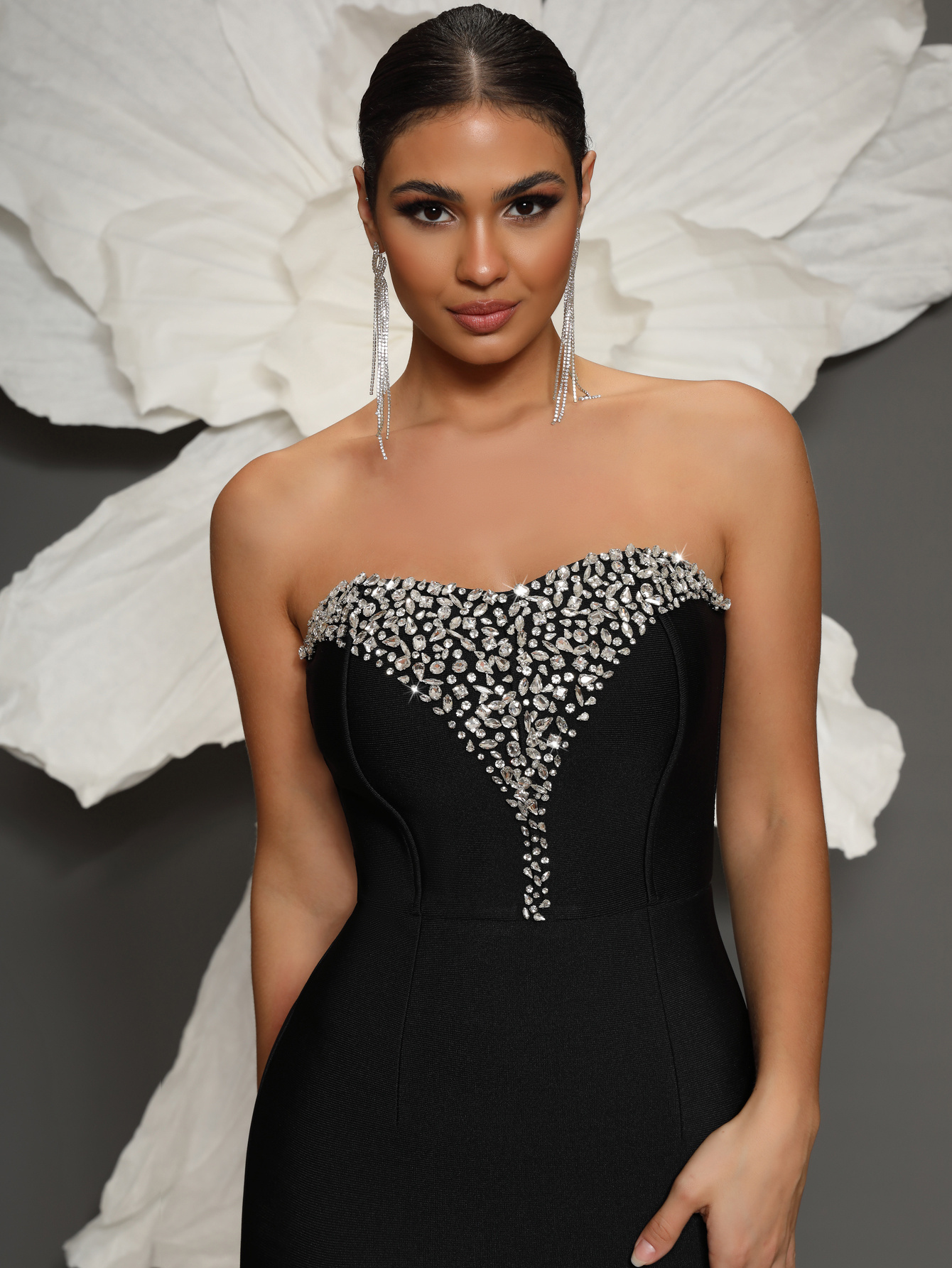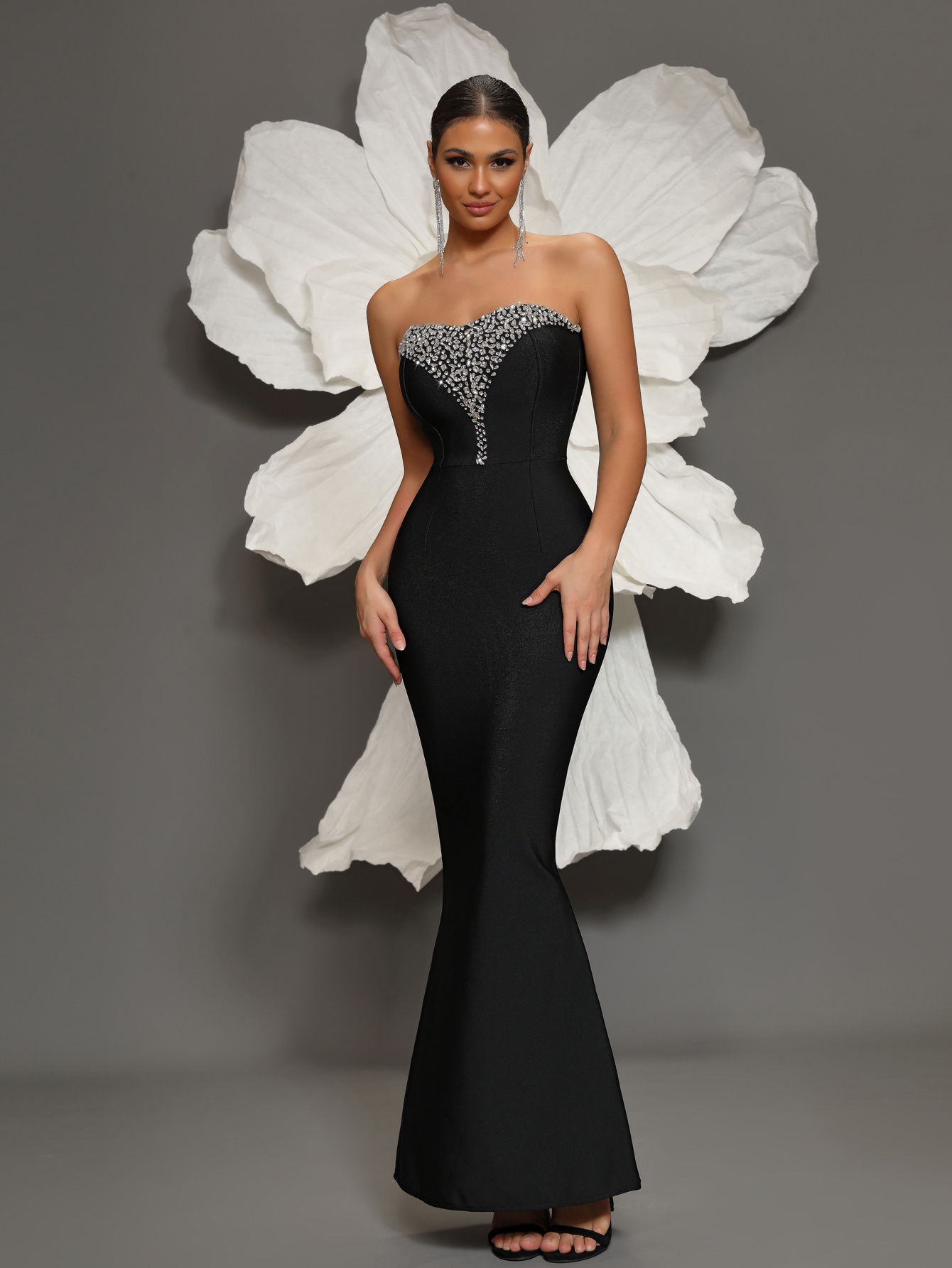 Shiny Sequin Slim Fit Formal Dress, Elegant Strapless Ankle Length Evening Dress For Party & Banquet, Women's Clothing