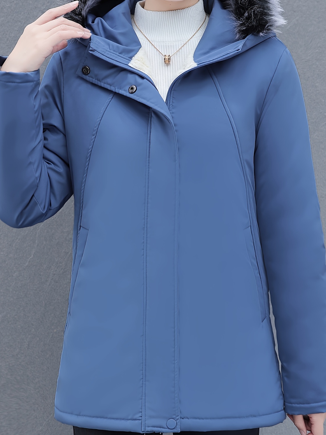 Women's Elegant Winter Coat - Thick Fleece-Lined, Hooded, Zip-Up Jacket in Solid Color