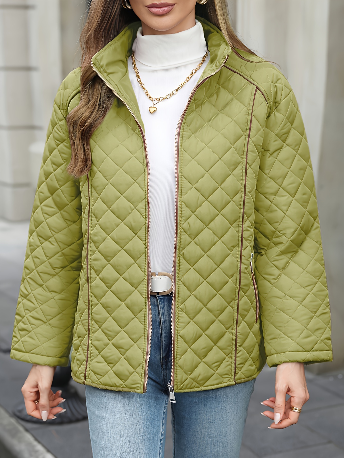 Women's Oversized Polyester Coat, Casual Hug Fit, Small Stand Collar, Long Sleeve, Zipper Closure, Autumn And Winter Warm Coat