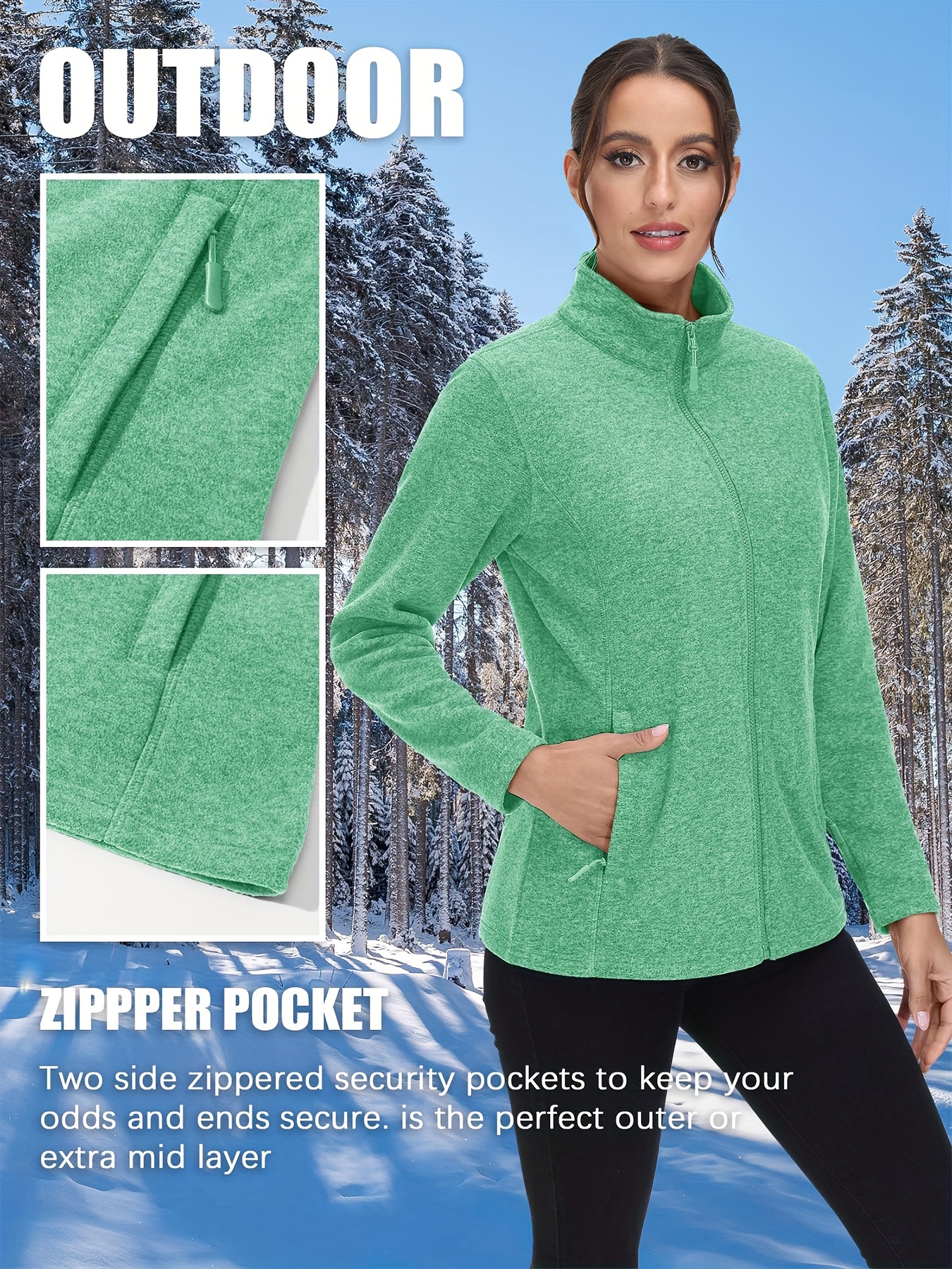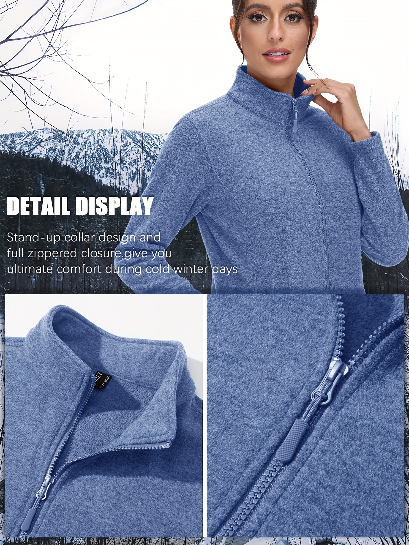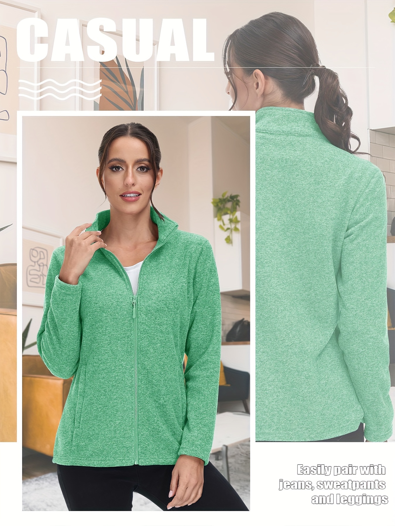 Women's Plus Size Fleece Jacket Full Zip Stand Collar Casual Jacket Autumn And Winter Warm Coat Lightweight Soft Comfort Jacket 2 Zipper Pockets Daily Travel Wear Commute Office To School Home Outdoor Recreation Activities Large Size Fleece Jacket