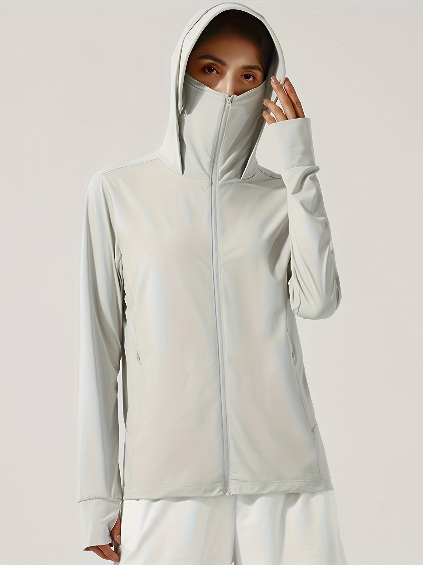 Women's Plus Size Solid Lightweight Hooded Sports Jacket, Spring/Summer, Pockets